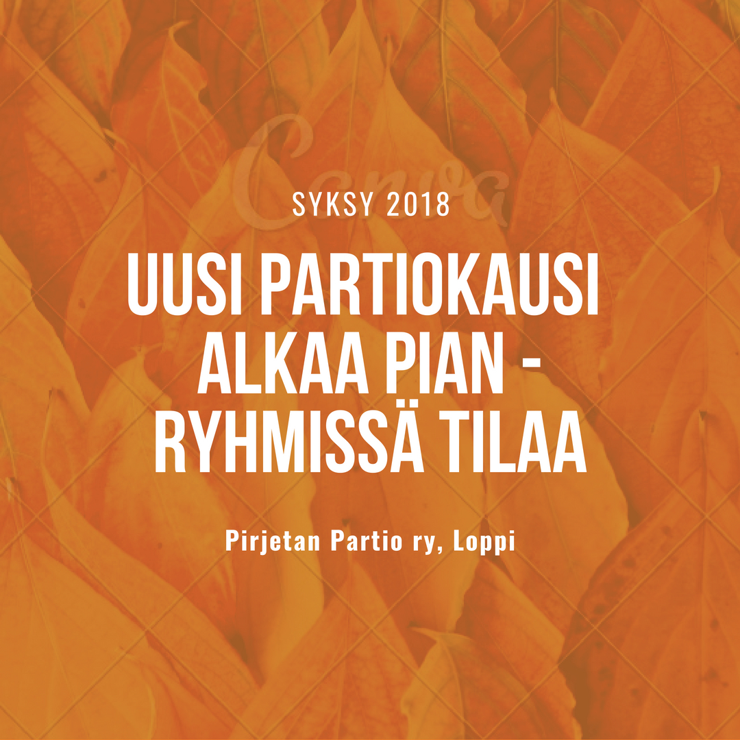 Pirjetan Partion ryhmät ja kokoontumisajat kaudelle 2018-2019 on nähtävissä täältä. Mikäli sopivassa ryhmässä on tilaa, sähköisen jäsenhakemuksen täyttämiseen pääsee täältä. Aloitusnuotio pidetään ti 28.8. kirkonkylän uimarannalla klo 18:00. Kanootit käytettävissä, samoin nuotio (omat eväät mukaan). Tervetuloa koko perheen voimin!